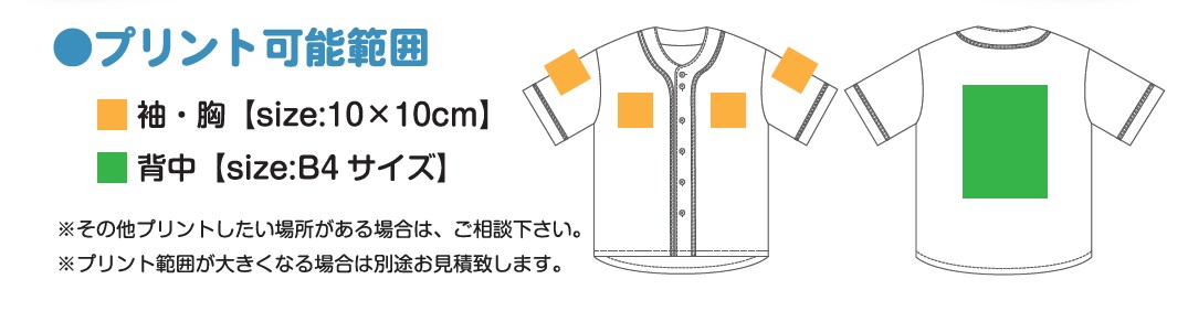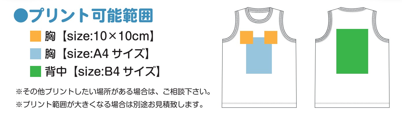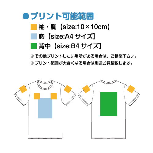 ※プリントの加工範囲は 225 ㎠以内です。それよりも大きくなる場合は追加料金が発生します。